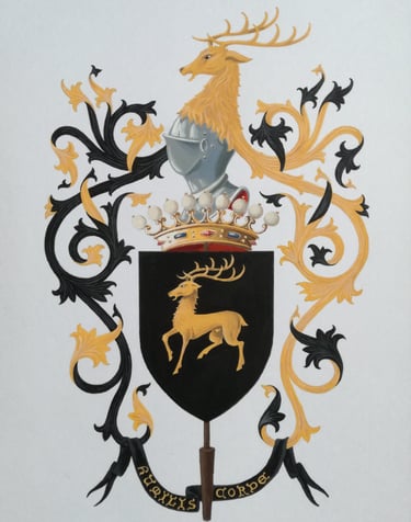 Pour ceux qui souhaitent créer leur propre héritage visuel, je conçois vos armoiries de A à Z — en respectant les codes traditionnels de l'héraldique tout en y intégrant votre identité, vos valeurs, ce que vous souhaitez transmettre. C'est sans doute la partie de mon travail qui me touche le plus : donner naissance à quelque chose qui n'existait pas encore, et qui durera.
